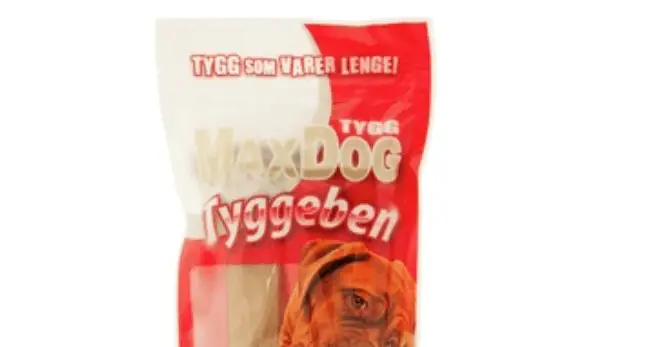 Après avoir trouvé des bandes d’emballage en plastique dans l’os à mâcher MaxDog, Europris a retiré le produit.