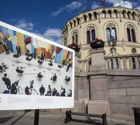 Norvège.Oslo.Parlement (Stortinget) .Photo: Terje Pedersen / NTB scanpix Cet été, une exposition de photos devant le Parlement montrera la présence …