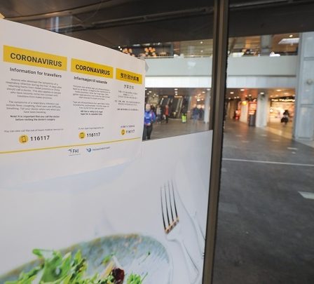 Affiches d’information sur Oslo S sur le virus corona.Photo : Ørn E. Borgen / NTB scanpix La Direction de la …